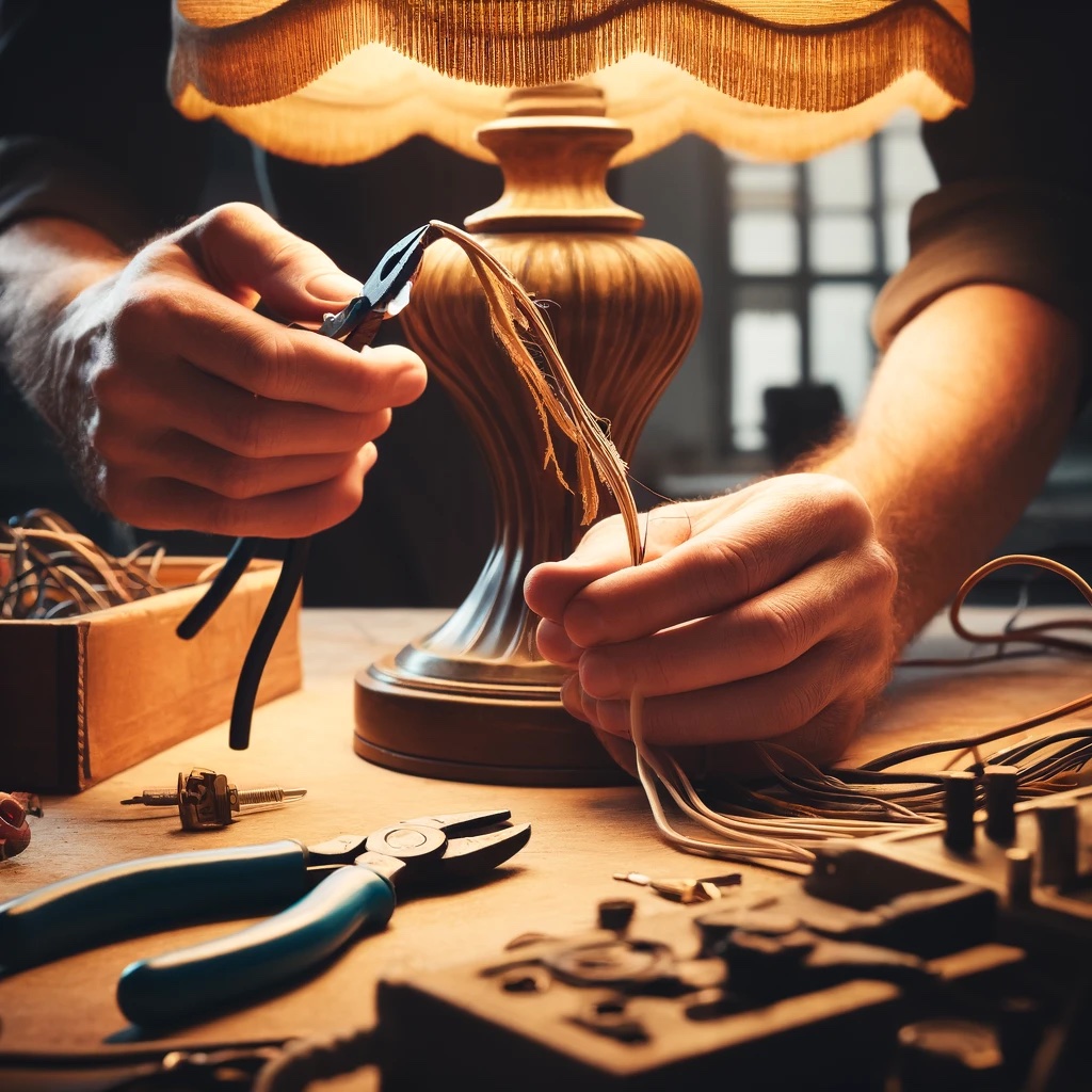 One of our most requested services is lamp rewiring. Wiring issues are common, especially in older lamps. Over time, cords can become brittle, frayed, or damaged, posing a serious safety hazard. Our technicians are highly trained in rewiring all types of lamps, from modern to vintage. Here’s what our rewiring process typically involves: